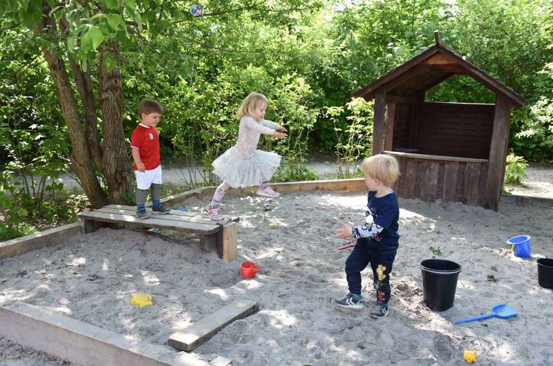 På vore skønne legeplads har vi blandt andet mange gode legekroge, store sandkasser og en multibane. Vi har desuden et naturområde med store træer, bakket terræn og bålplads. Vi nyder alle vores forskellige rum udenfor, som kan noget forskelligt, og hvor årstidernes skiften giver forskellige legemuligheder.