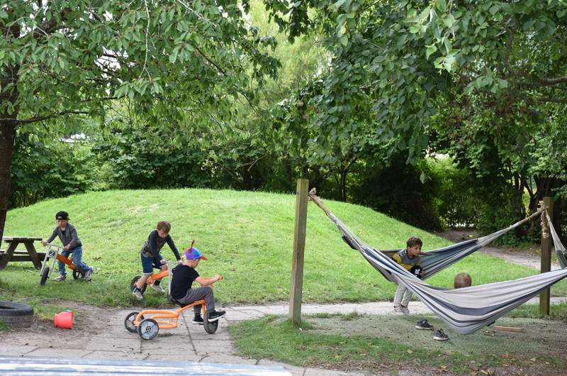 Kl. 12.00 Er der børn som hviler/sover, nogle børn holder pause, og andre er på legepladsen.